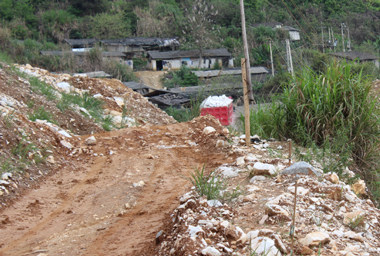 圖1沿著這樣的山路,4驅(qū)的汽車約20分鐘,到達大理石礦山的開采點。