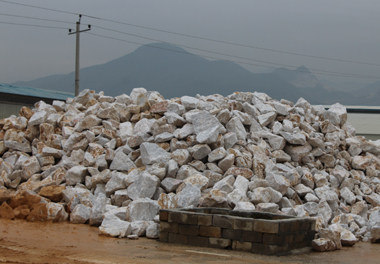 圖6 從礦山運來的大理石,堆放在料場,以備使用。我們明顯會發(fā)現(xiàn)石頭外表有黃泥等贓物,怎么辦呢,稍后請看圖8.