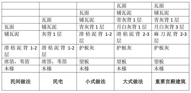 月白灰背:大麻刀灰或大麻刀月白灰2~4層,每層厚度不超過3厘米,反復軋實。