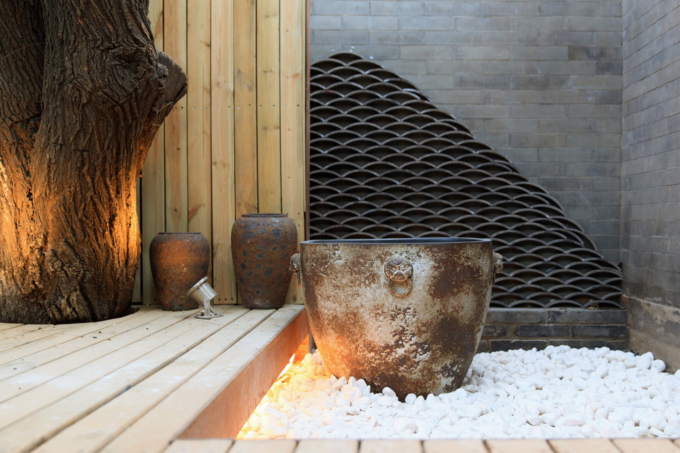 庭院本身咫尺間,在有限的空間中通過梳理與整合并對(duì)「瓦」這種傳統(tǒng)材料的不同組織與定義于方寸間營造山水,觀想山水。改造后的小院本身成為這個(gè)城市中的一個(gè)「彼處」,它以一種異化的方式讓人們?cè)谶@里忘卻現(xiàn)實(shí)生活中的紛擾而暫時(shí)回歸一種更加貼近自然的生活狀態(tài),亦或是對(duì)心靈的慰藉也好,是為我們所期望的。