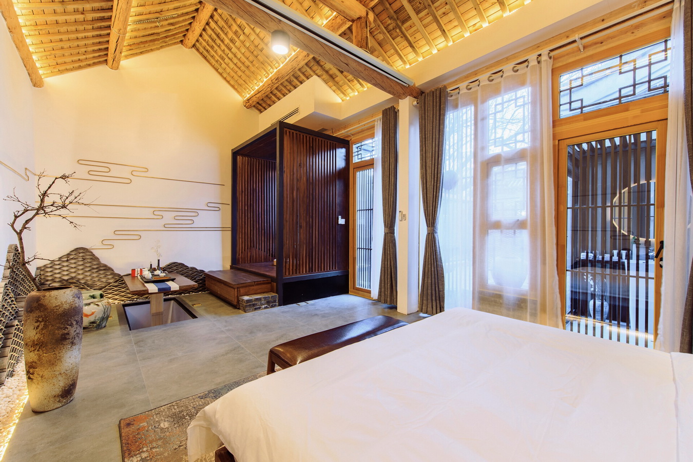 改造后的小院包括兩套客房、一間公共廚房和一間禪茶室(拆舊建新)。外立面除加建部分外延續(xù)了原初房屋的色彩與細(xì)部做法。將原先的窗型、窗臺(tái)等元素拆解、分配與重組,與新的肌理混合構(gòu)成新的建筑立面。