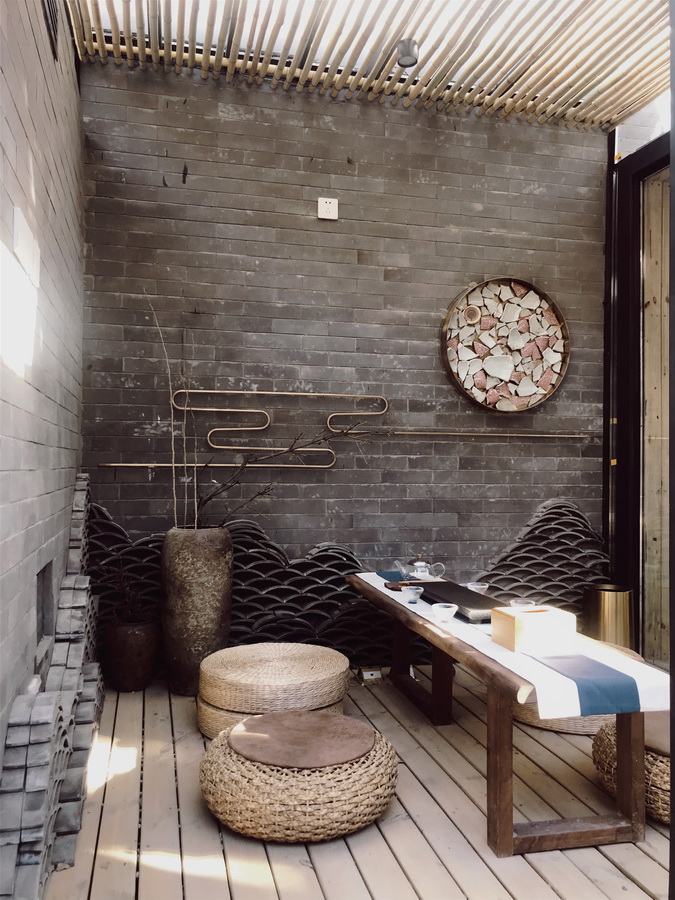 院子入口右側(cè)是一顆大樹,只要踏入院門,在“她”的庇護(hù)下,就再無后海的熙熙攘攘,立馬墜入一方靜謐的氛圍中,加之房屋色調(diào)濃重,一種厚重的歷史感便油然而生。