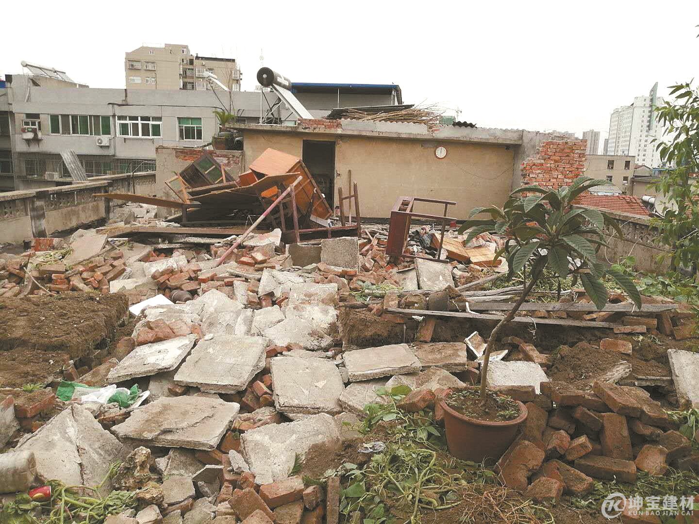 市汽運(yùn)小區(qū)是一棟4個單元的7層老式樓房,住有40戶居民。該小區(qū)樓頂是開放式平臺,沒有任何遮擋物,部分居民將廢棄物隨意丟棄在上面。天長日久,年久失修,房屋樓頂老化,水泥面出現(xiàn)裂縫,一遇下雨就滲水嚴(yán)重。居民李合山一家住在7樓,多年來深受其害。
