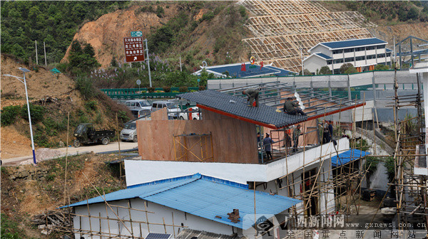 據(jù)了解,坡屋頂翹角改造融入了當?shù)噩幾褰ㄖ酥拘栽?,就地取材,在?jié)約造價的同時,凸顯當?shù)仫L貌特色。坡屋頂主要由深灰色樹脂瓦、木色封檐板、封檐花紋、木色欄桿、披檐吊腳構成,配合白粉墻形成獨具特色的瑤族新風貌。