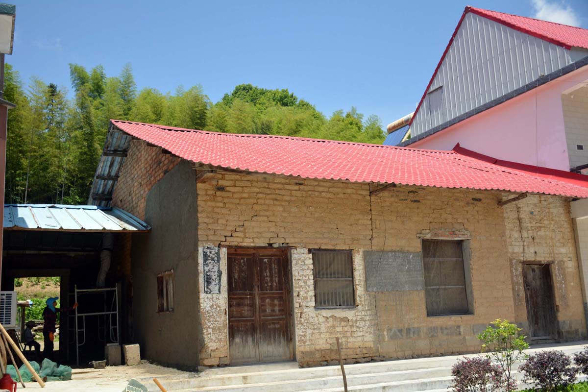 圖為工人在用粉刷墻壁。老屋是用土磚砌起來的,以前,屋頂上蓋的是泥巴瓦,現(xiàn)在,房子的主人將其換成了紅色樹脂瓦。村民說,要像儲(chǔ)大叔保護(hù)上馬石一樣保護(hù)老房子,說不定將來這樣的房子成為村里的一道景點(diǎn)。