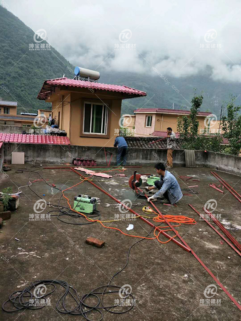 【所有都在屋頂上先做好鋼架在做樹脂瓦鋪蓋】