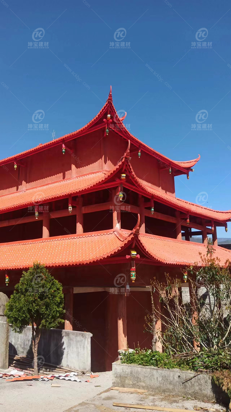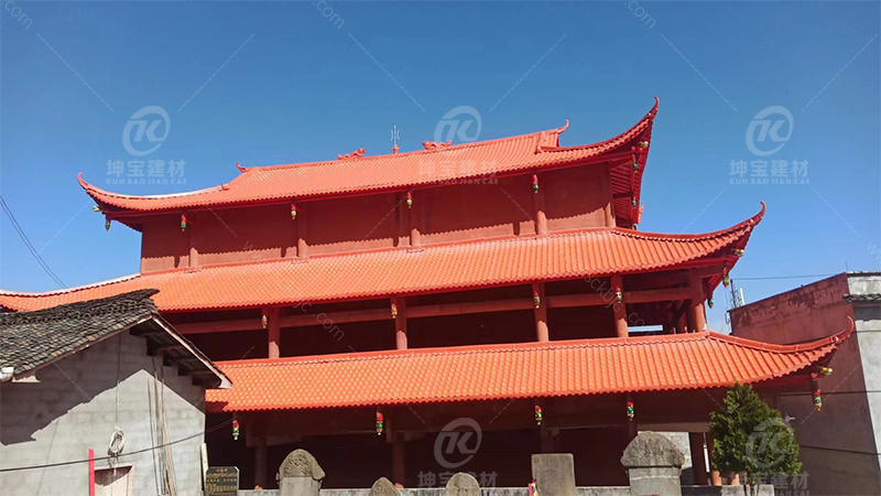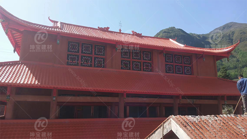 雅安市寺廟黃樹脂瓦安裝效果圖展示