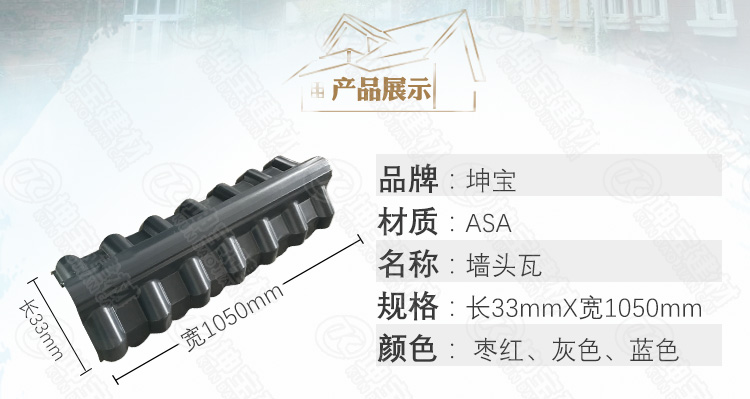| 【名稱(chēng)】 | 仿古圍墻瓦、女兒墻頭瓦、樹(shù)脂圍墻瓦 | ||