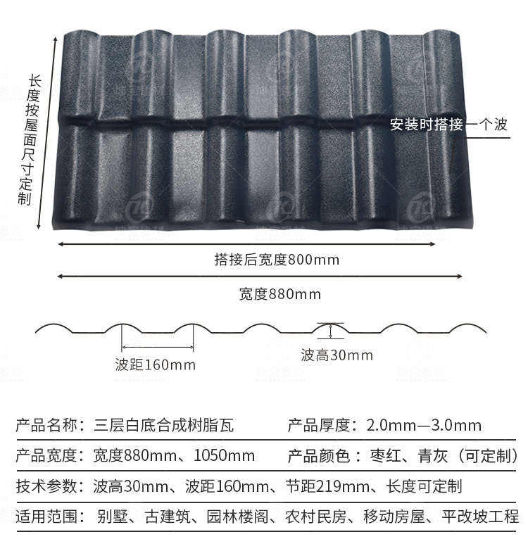 三層白底合成樹脂瓦_3.0mm廠家直銷_高性價比